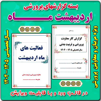 بسته گزارش های معاون پرورشی اردیبهشت ماه 1405 شامل 12 گزارش در قالب ورد و با قابلیت ویرایش می باشد . این بسته شامل هر سه مقطع ابتدایی ، متوسطه اول و دوم می باشد و توسط تیم ما طراحی و تولید شده است . این بسته مناسب برای چاپ و قراردادن در کلربوک برای ارائه به بازدیدکنندگانی هست که از اداره به مدرسه مراجعه می کنند و با این بسته مشکل مستندات همکاران تا حدود زیادی حل خواهد شد.
