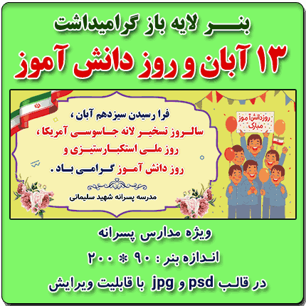 برچسبها: بنر ، لایه باز ، سیزده آبان ، روز دانش آموز