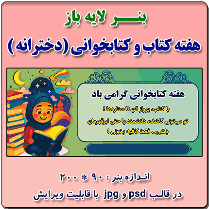بنر لایه باز گرامی داشت هفته کتاب و کتابخوانی - ویژه مدارس دخترانه