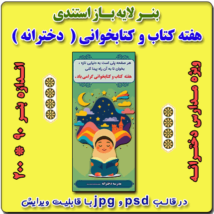 بنر لایه باز استندی گرامی داشت هفته کتاب و کتابخوانی - ویژه مدارس دخترانه